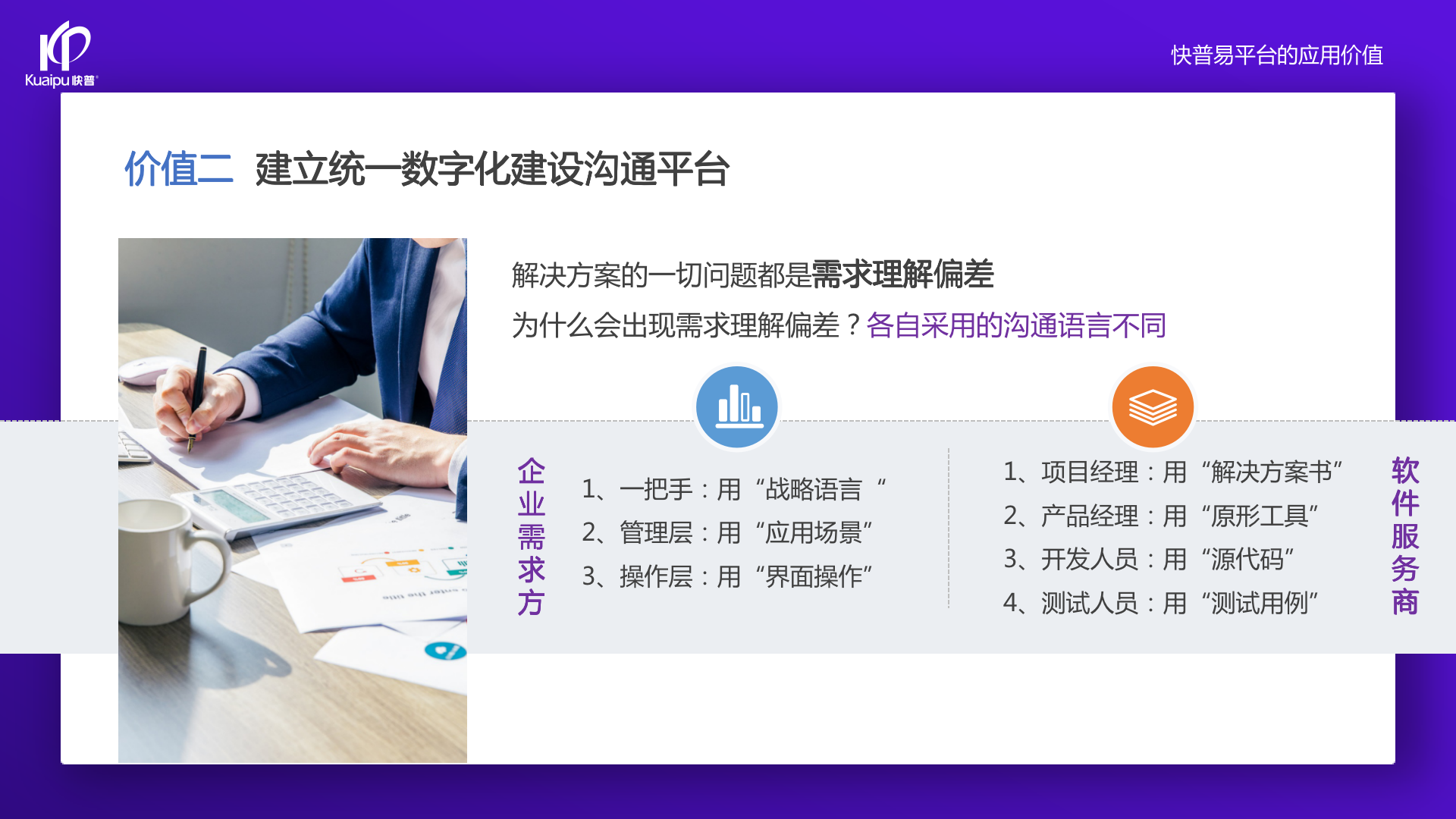 過去企業(yè)用的ERP系統(tǒng),都不能完全理解、看透它的邏輯。因為不了解邏輯,就看不透,就用不好系統(tǒng)。快普經(jīng)歷了大量的客戶,發(fā)現(xiàn)如果用戶理解系統(tǒng)邏輯,會用得更好,提的需求也更合理、更結(jié)構(gòu)化。但過去確實沒辦法讓所有普通用戶看懂源代碼。