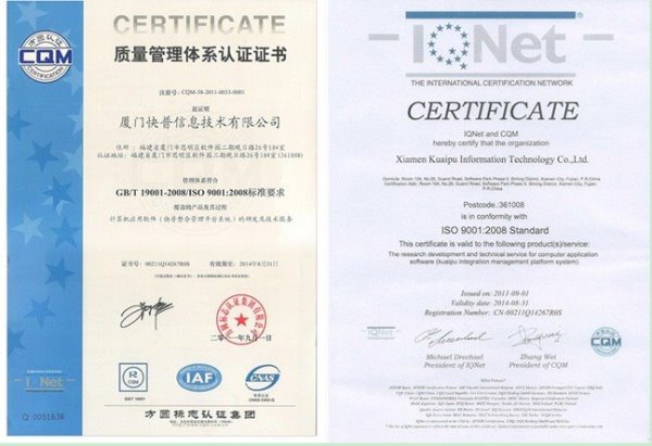 自公司成立起,快普就嚴(yán)格按ISO9001質(zhì)量體系標(biāo)準(zhǔn)進(jìn)行規(guī)范化運(yùn)作。今年年初快普公司正式引進(jìn)ISO質(zhì)量管理體系進(jìn)入輔導(dǎo)期以來(lái),經(jīng)過(guò)半年多貫標(biāo)工作的深入開展,今年8月,審核專家對(duì)快普公司質(zhì)量管理體系運(yùn)行的有效性、符合性給予了高度的評(píng)價(jià),一次性便順利通過(guò)了方圓認(rèn)證集團(tuán)的嚴(yán)格審核,并獲得了ISO9001國(guó)際質(zhì)量管理體系認(rèn)證證書。