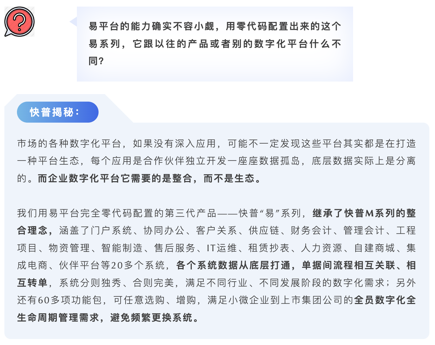 隨著新技術(shù)的崛起,市面上涌現(xiàn)出了大量的低代碼、零代碼開發(fā)平臺,但很多企業(yè)嘗試后評價褒貶不同。然而,有一款零代碼平臺卻在2年內(nèi)幫助500多家企業(yè)實現(xiàn)了數(shù)字化轉(zhuǎn)型升級,得到廣泛好評。這就是國內(nèi)領(lǐng)先的整合軟件廠商廈門快普自主開發(fā)的零代碼平臺——快普易平臺。